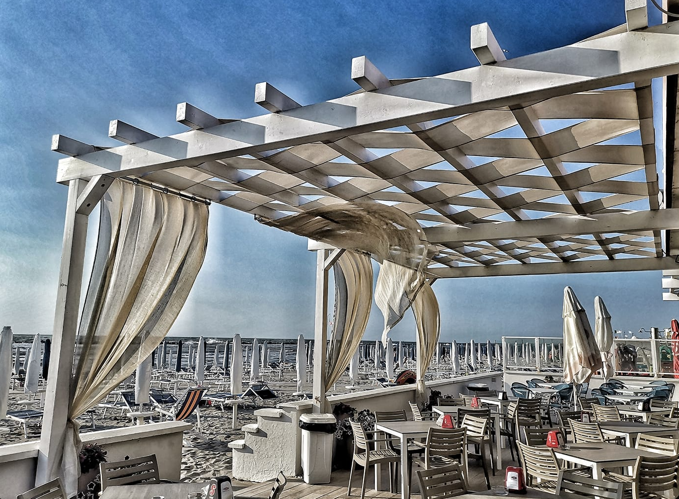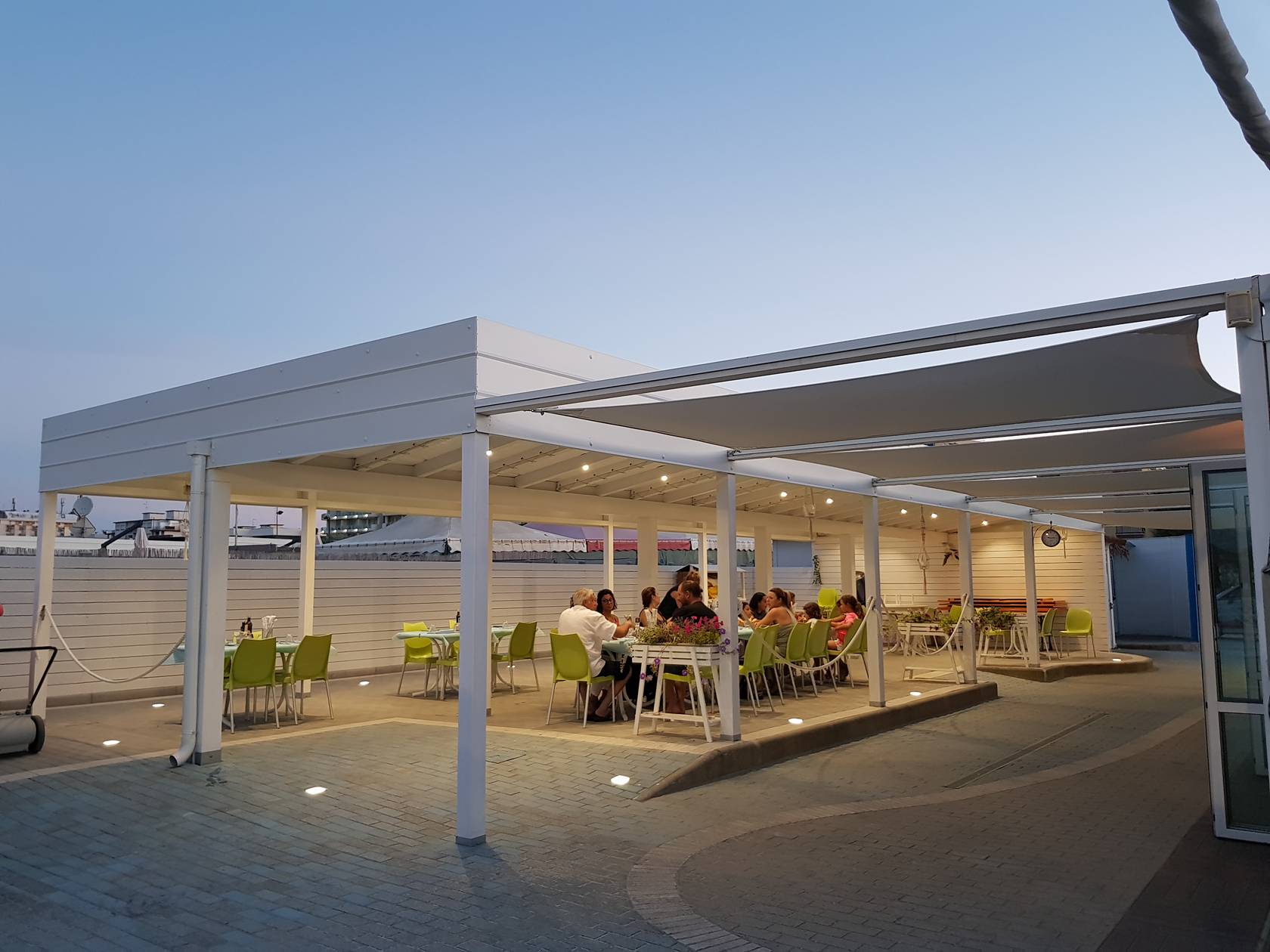 Realizziamo inoltre strutture per stabilimenti balneari, tettoie e chioschi su misura di design e curati in ogni minimo dettaglio, arricchiti con tende e luci led per creare un ambiente unico e d’effetto per stupire la clientela più esigente.